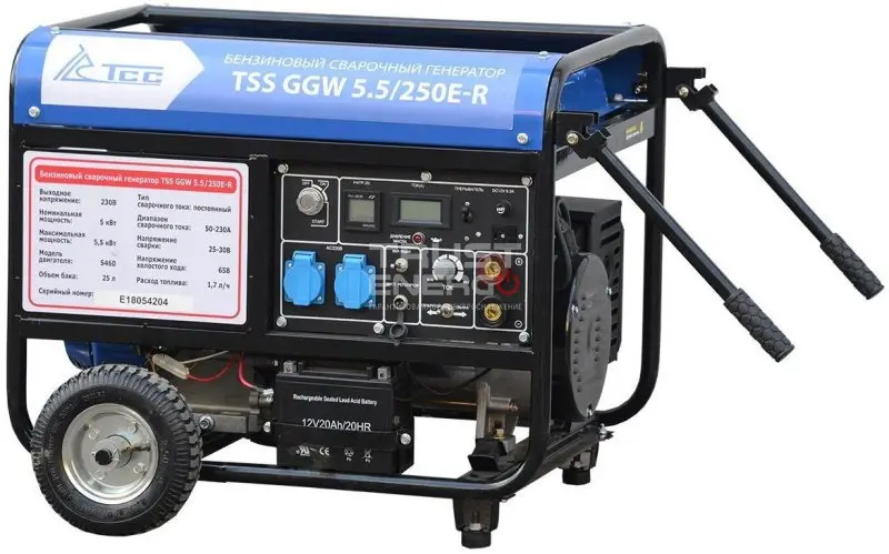 Сварочный генератор ТСС GGW 5.5/250E-R номинальной мощностью 6 кВт с двигателем TSS S460 - отличный сварочный электроагрегат демонстрирующий уверенный приём нагрузки как резервный источник питания, так и основной с функцией сварки.